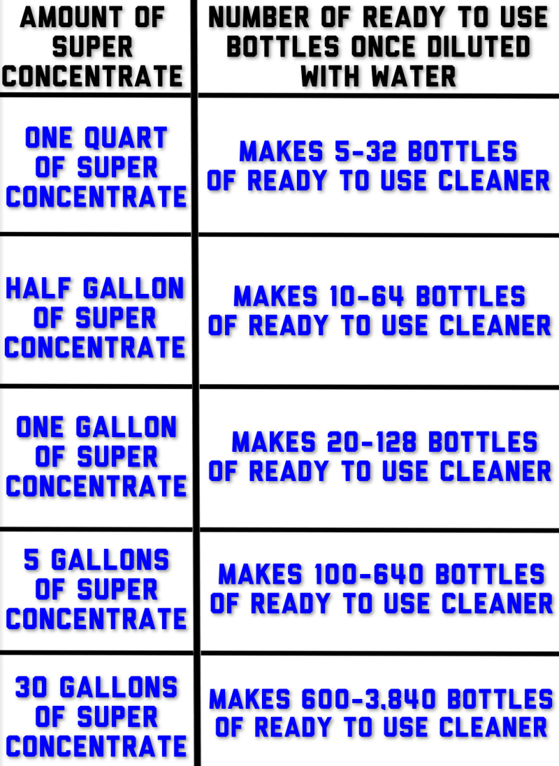 1. Simply dilute 1oz. Magic Touch Cleaner to 1-gallon (128oz.) water.